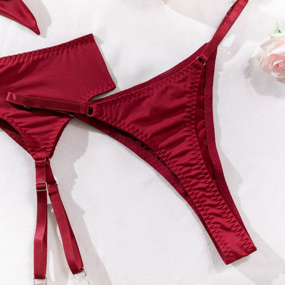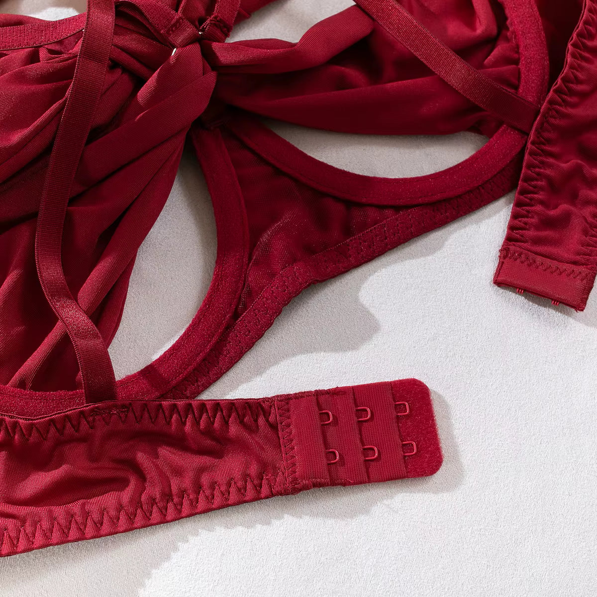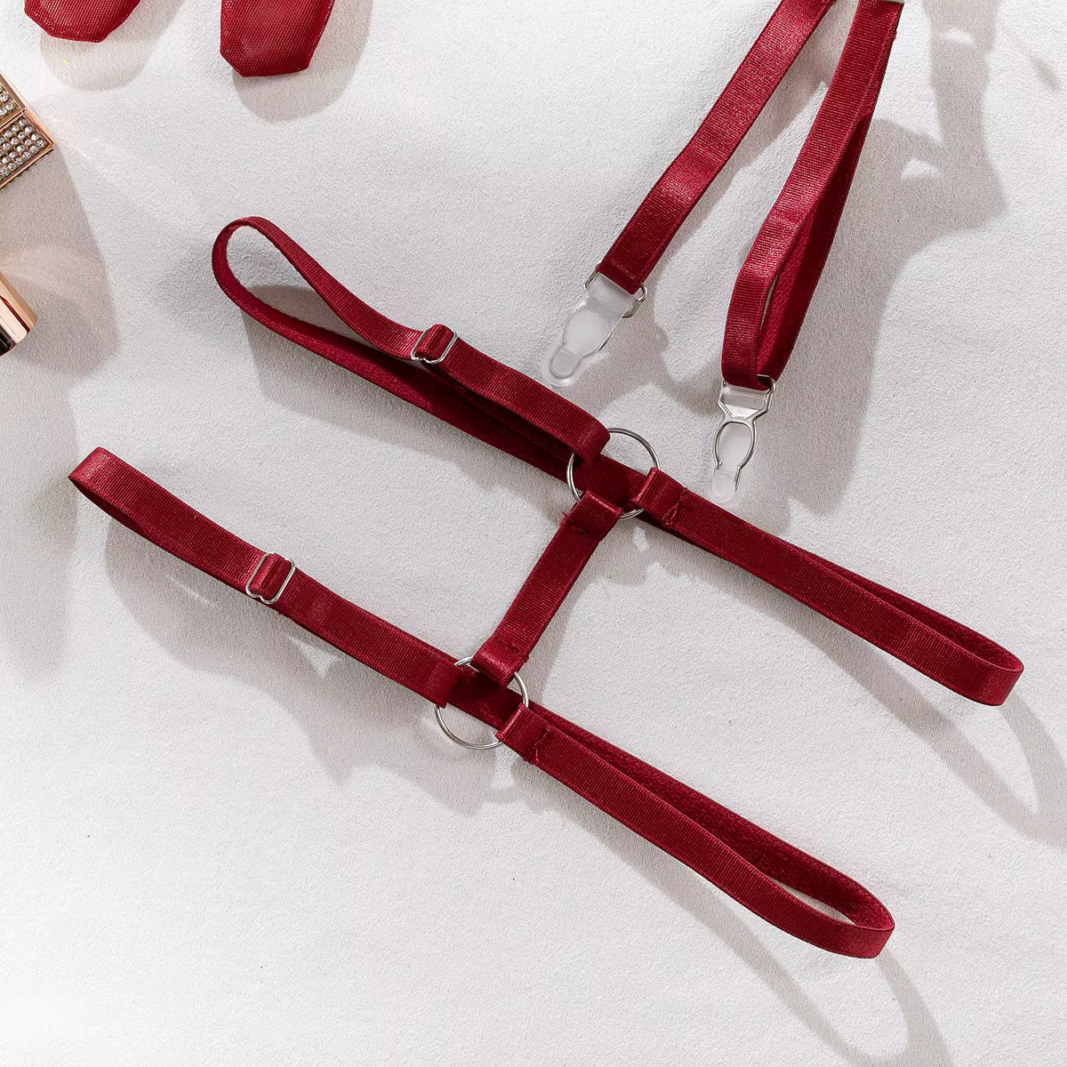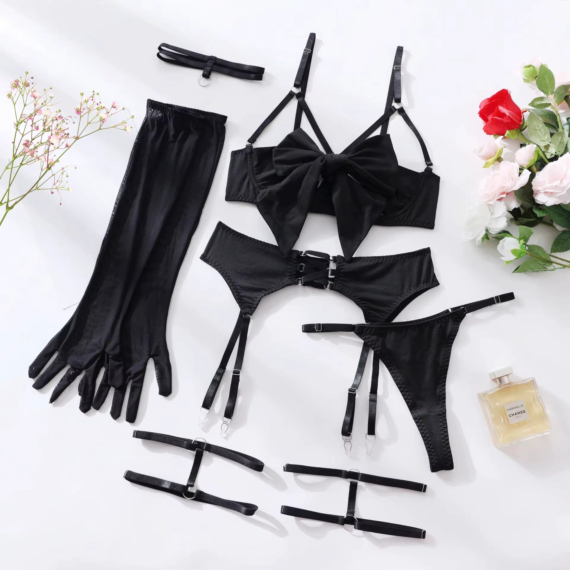 Zestaw Secret to kompletny zestaw bielizny, który łączy elegancję z wyrafinowaną zmysłowością. Każdy element – biustonosz, stringi, pas do pończoch, podwiązki, choker i rękawiczki – został dopracowany w najdrobniejszych detalach, aby całość tworzyła spójną i uwodzicielską kompozycję. To wyjątkowy efekt „kobieta jako prezent”, który zachwyca zarówno wyglądem, jak i komfortem noszenia.